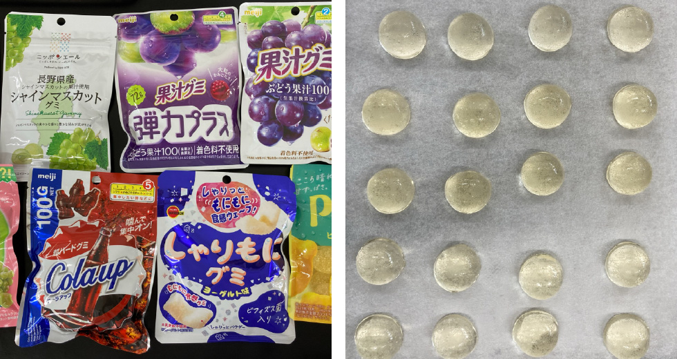 開発職として「味」や「食感」について日々向き合っているのですが、社内外に関わらず、他人と味の違いや食感の違いなどの定義を揃えることが、仕事をやっていて難しいと感じます。例えば「モチモチ」という食感においても、実は人によって感じている部分が異なっており、一回目に噛み込んだ時の弾力がモチモチと考える人もいれば、餅の噛んでも噛み切れないしなやかさをモチモチと考える人もいて、違うものを定義してしまっていることがあります。それ故に自分が良いと思っている部分が営業やお客様に伝わらない時があるため、深くディスカッションすることで味や食感の定義を合わせていくことが重要であると常に感じています。